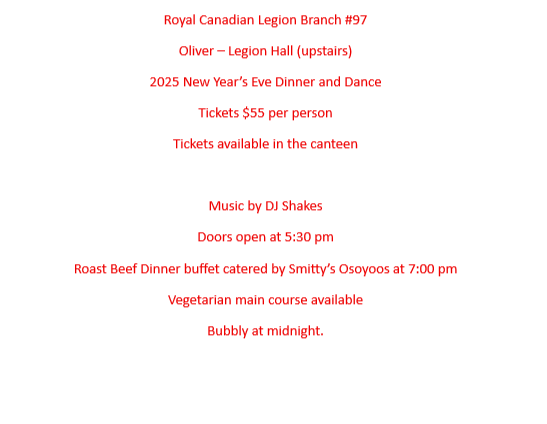 Oliver Legion meat draws every Saturday.